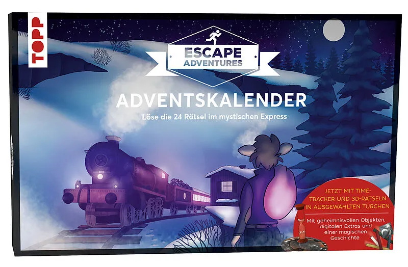 24 Tage Escape-Abenteuer mit 3D-Rätseln 24 mal um die Ecke denken. Jeden Tag ein kniffliges Rätsel. Nur die richtige Lösung offenbart, welches Türchen das nächste ist. Löse die 24 Rätsel im mystischen Express. Mit geheimnisvollen Objekten, digitalen Extras und...