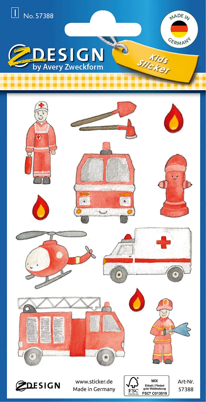 Feuerwehr rot beglimmert Papier Stickers