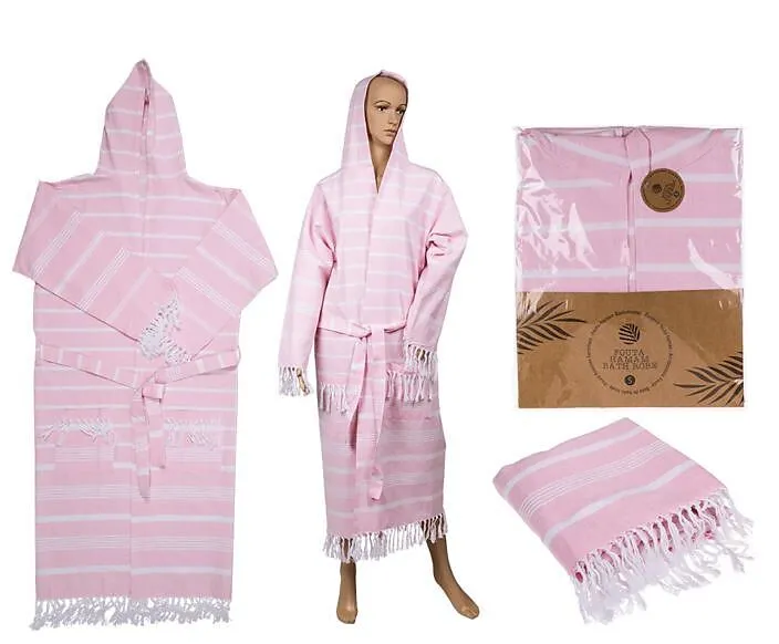 Fouta Hamam rosa/weisser Bademantel Grösse M,