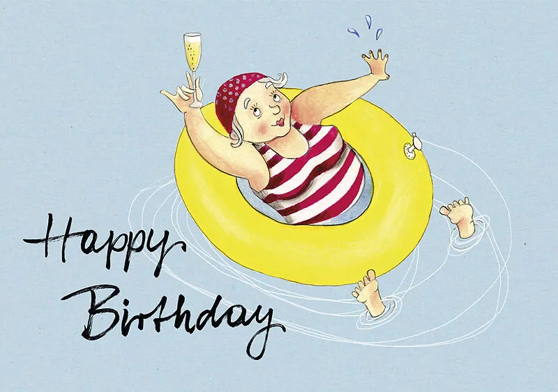 Frau Schwimmring Happy Birthday Doppelkarte
