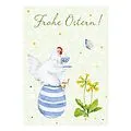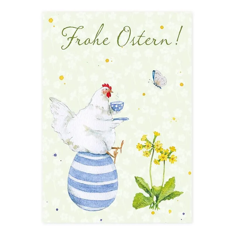 Frohe Ostern Postkarte glückliche Hühner