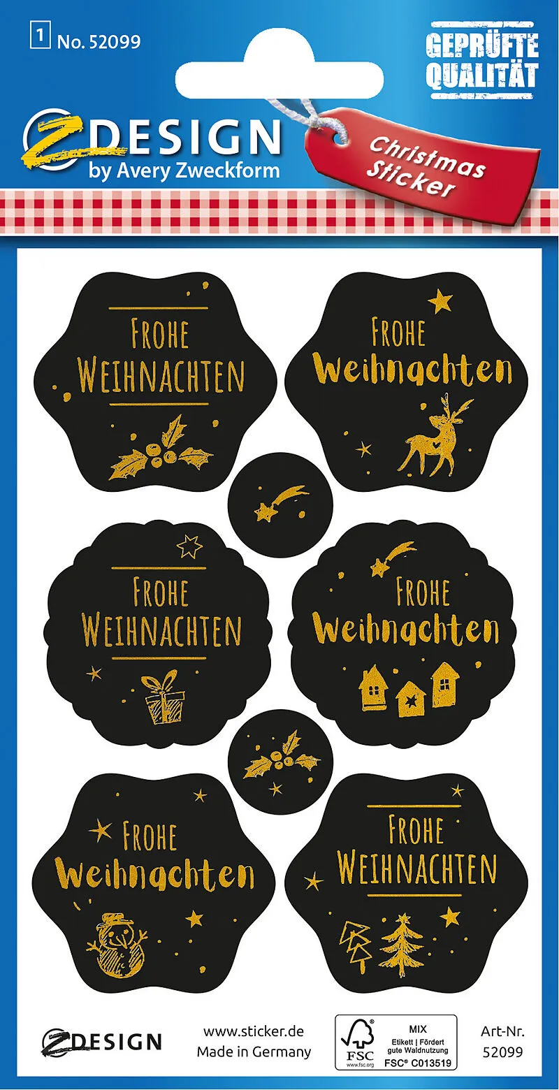 Frohe Weihnachten schwarz Papier Stickers