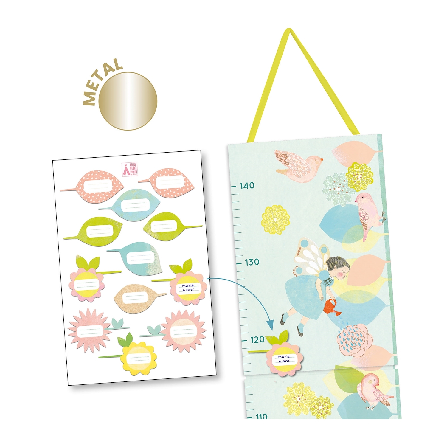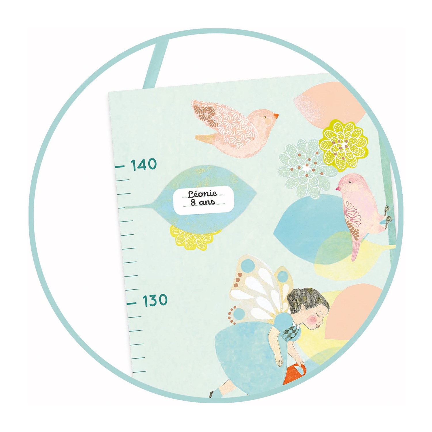 Messlatte mit einer Skala von 60cm bis 1.40m. 90x20cm Aus Karton Buntes Band zum Aufhängen 1 Bogen mit wiederverwendbaren Stickern. 30x20cm Schachtel mit anpassbarem Deckel zum Aufbewahren. 22x32x2.5cm Bezaubernde Messlatte, um das Wachstum der Kinder über die...