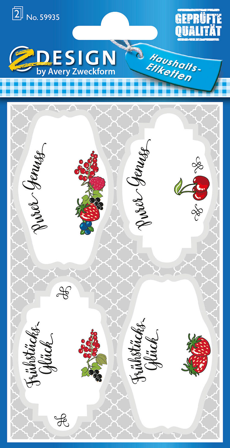praktische Etiketten aus beschriftbarem und wiederablösbarem Papier. Zum Kennzeichnen von Vorräten. Inhalt: 8 Etiketten / 2 Bogen Sticker-Verpackungsgrösse: 12 x 8 cm