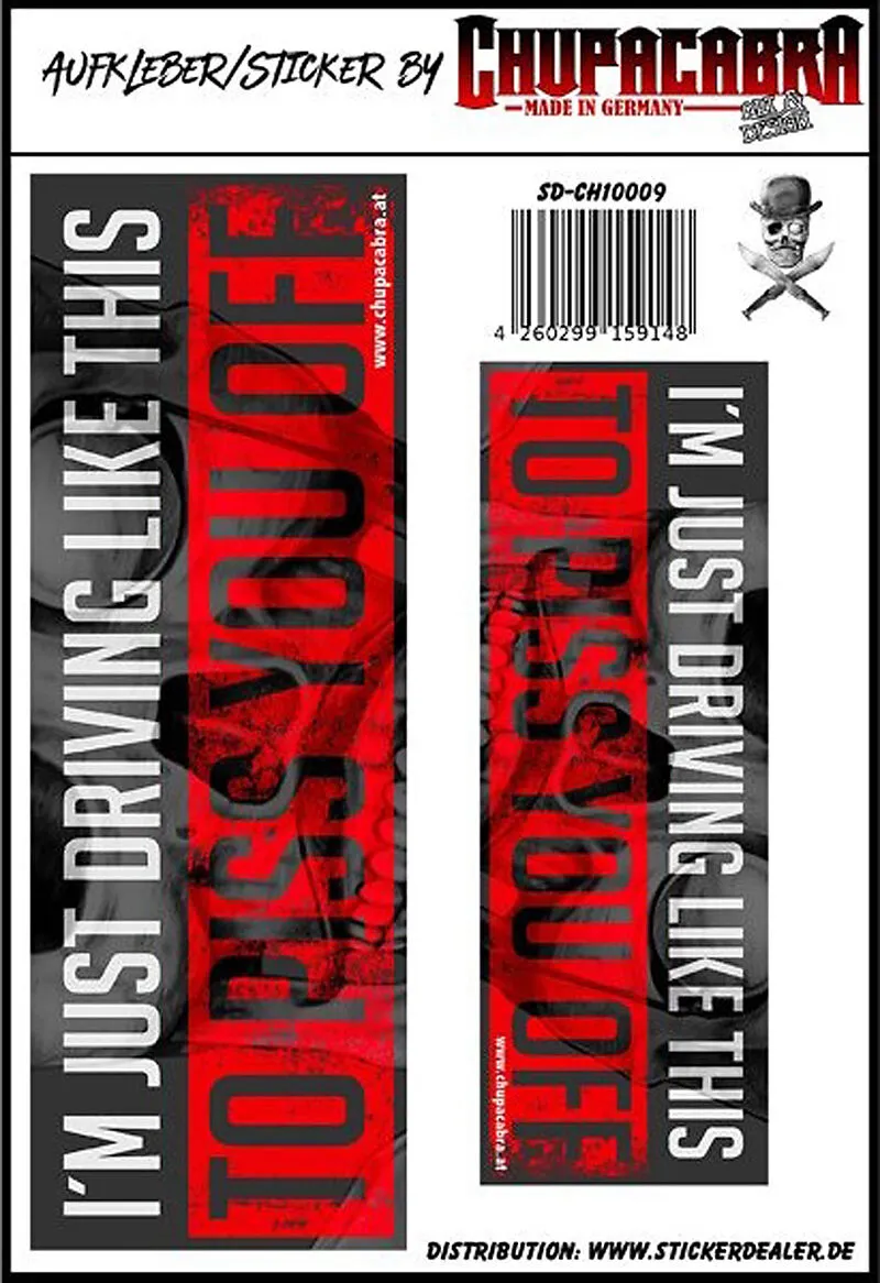 Die Sticker sind auf Vinyl-Folie gedruckt, konturgeschnitten und für außen geeignet.Grösse 15 x 22 cm
