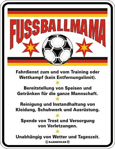 Fussballmama. Blechschild im Format 17 x 22cm aus rostfreiem Aluminium.
