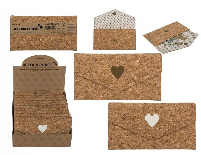 Geldbörse aus Kork mit Herzmotiv, ca. 19 x 10 cm,