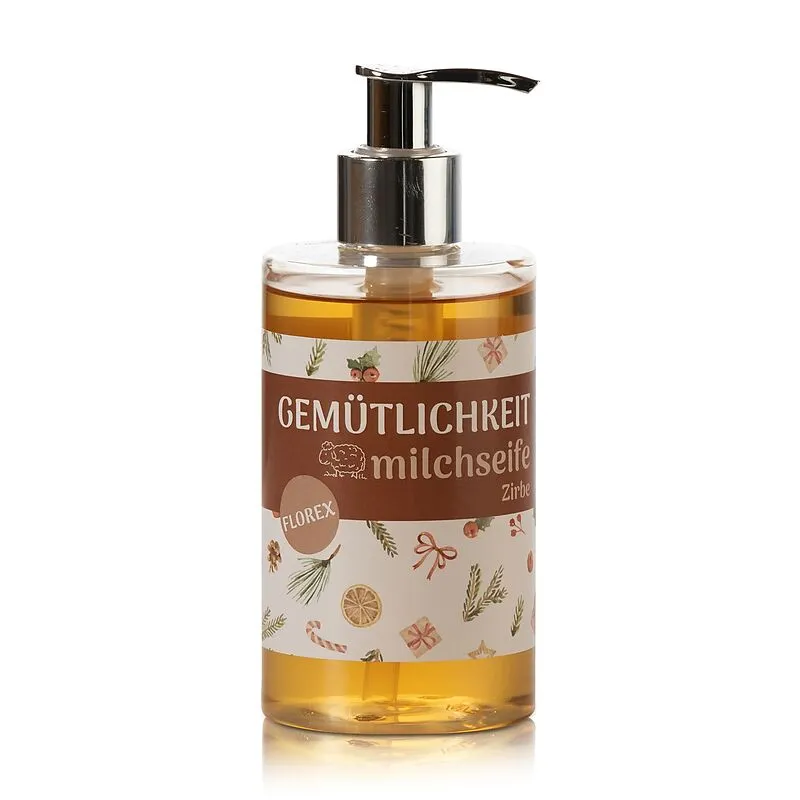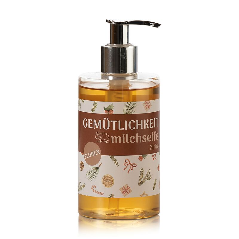 Flüssigseife Schafmilch 250ml Arve Zirbe"Gemütlichkeit" Zirbe - Der angenehme Duft der Zirbe entspannt und wirkt wohltuend. Flüssige Schafmilchseife reinigt die Hände sanft und hinterlässt ein frisches, angenehmes Hautgefühl. Für alle Hauttypen geeignet. Mit Z...