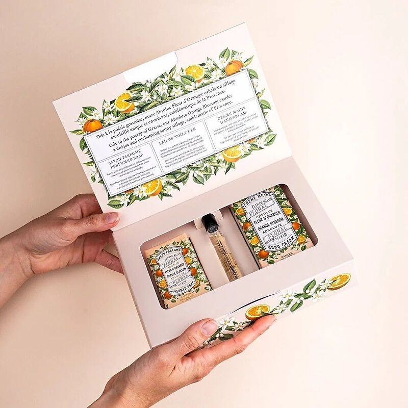 Panier des Sens Dieses Geschenkset mit Pflegeprodukten auf Orangenblüte bietet einen sonnigen Duft aus der Provence, der Ihre Sinne weckt und Sie auf eine Reise schickt. Der Duft Fleur D'Oranger ist das Werk des Meisterparfümeurs aus Grasse. Er wurde aus Absol...