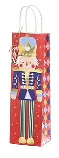 Geschenktüte Nussknacker in Rot mit buntem und goldenem Metallic- Aufdruck, Maße ohne Henkel ca. 11 x 36 x 10 cm.