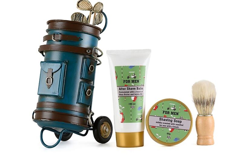 Lieferumfang: Rasierpinsel 50 g Rasierseife Menthol 150 ml After Shave Balsam Shea Butter und Jojoba Öl Masse: 23 x 13 x 8 cm