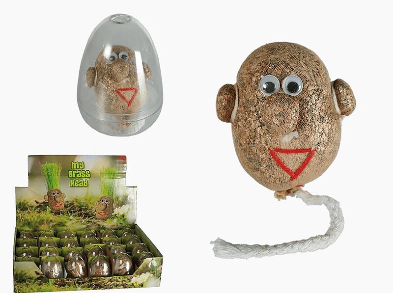 Begiesse diesen lustigen Graskopf und in ein paar Tagen wächst ihm eine witzige Frisur aus echtem Gras.