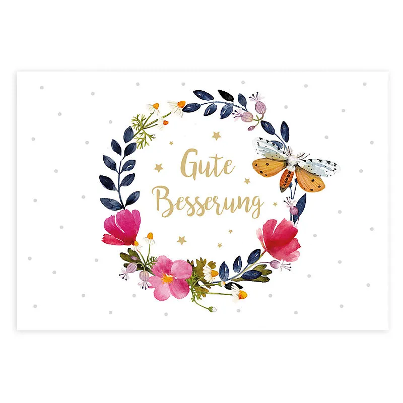 Gute Besserung Postkarte mit Blumenkranz-Motiv