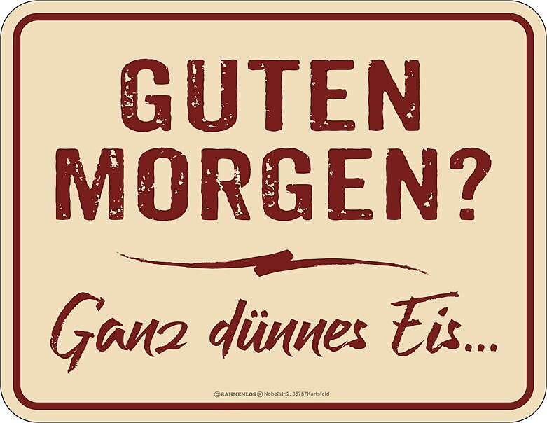 Guten Morgen? Ganz dünnes Eis... Blechschild