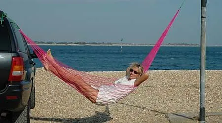 Der grosse Hit aus England: Diese Hängematte ist zusammengelegt nicht grösser als ein Knirps, misst aber 2,70 Meter und trägt ein Gewicht bis zu 120 kg! Aus 3mm dickem Nylon. Für Indoor und Outdoor... Lass wieder einmal deine Seele baumeln...