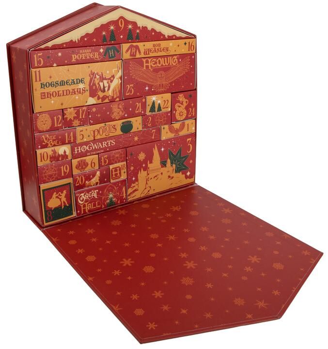 Erlebe das zauberhafte Universum von Harry Potter mit dem neuesten Deluxe-Adventskalender. Die wunderschöne Hardcover-Box in Form eines Hauses hat ein festliches Cover, das von den Häusern von Hogwarts inspiriert ist und dich in der Weihnachtszeit sicher verza...