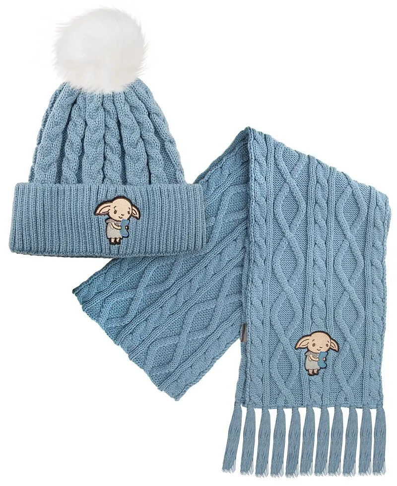 Dieses Set aus Mütze und Schal ist aus weichem, luxuriösem himmelblauem Stoff gefertigt und bietet höchsten Komfort und Wärme an kühlen Tagen. Beide Teile zeigen ein wunderschön gesticktes Bild von Dobby, jedermanns Lieblings-Hauselfen. Egal, ob du die Hallen ...