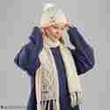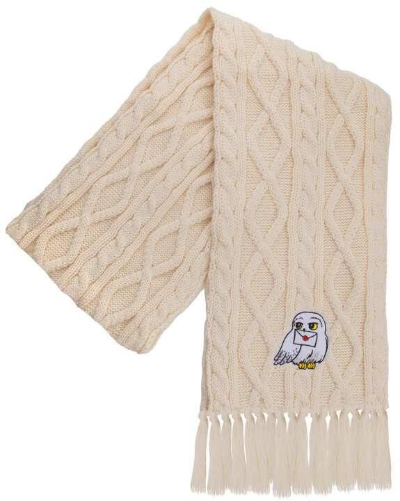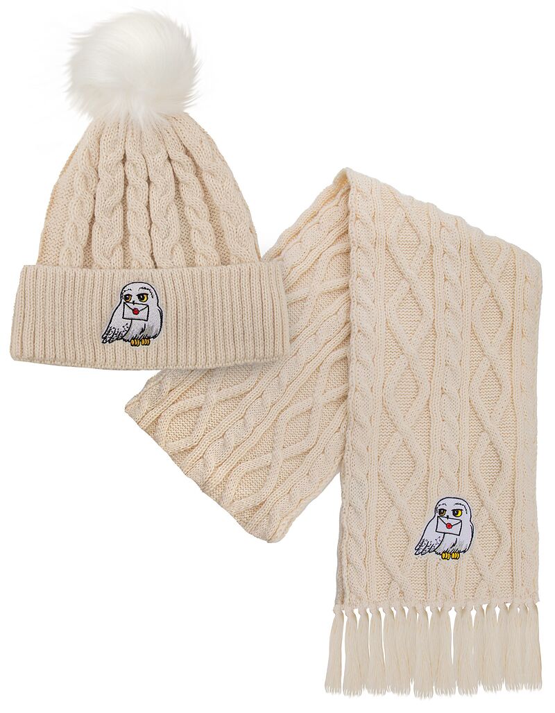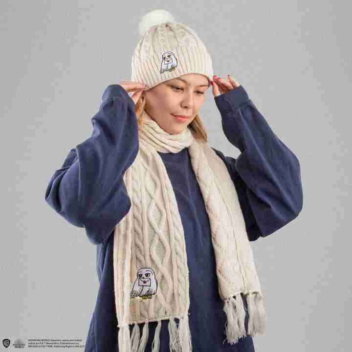 Dieses Set aus Schal und Mütze ist aus einem weichen und luxuriösen elfenbeinfarbenen Stoff gefertigt und bietet höchsten Komfort und Wärme an kühlen Tagen. Beide Teile zeigen ein wunderschön gesticktes Bild von Hedwig, der geliebten Schnee-Eule aus der Zauber...