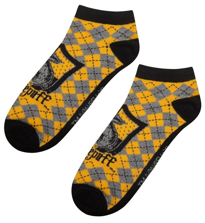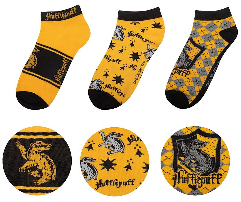 Diese 3 Paar Socken mit Hufflepuff-Emblemen und den erkennbaren gelben und schwarzen Farben sind perfekt für jeden Hogwarts-Liebhaber. Die Socken lassen sich leicht unter deinen Schuhen verstecken und begleiten dich nach draussen oder sind dein bester Freund f...