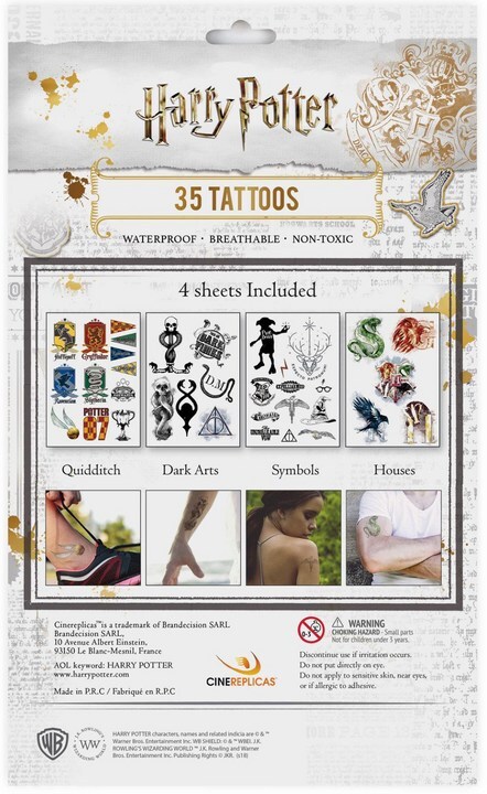 Diese temporären Tattoos sind ein Muss für alle Veranstaltungen und Partys zum Thema Harry Potter. Mit 4 verschiedenen Stilen können Sie Ihre Tattoos an Ihr Kostüm und Ihr Partymotto anpassen. Zeigen Sie ein paar Tage lang Ihren Stolz auf das Haus mit Tattoos ...