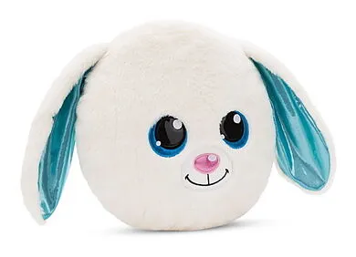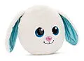 Das runde Plüschkissen Hase Wolli-Dot in der Form eines Häschenkopfes ist nicht nur flauschig weich, sondern begeistert mit einem bezaubernden Gesichtsausdruck, grossen, blauen Glitzeraugen, einem rosa glänzenden Näschen und langen Schlappohren mit einer türki...