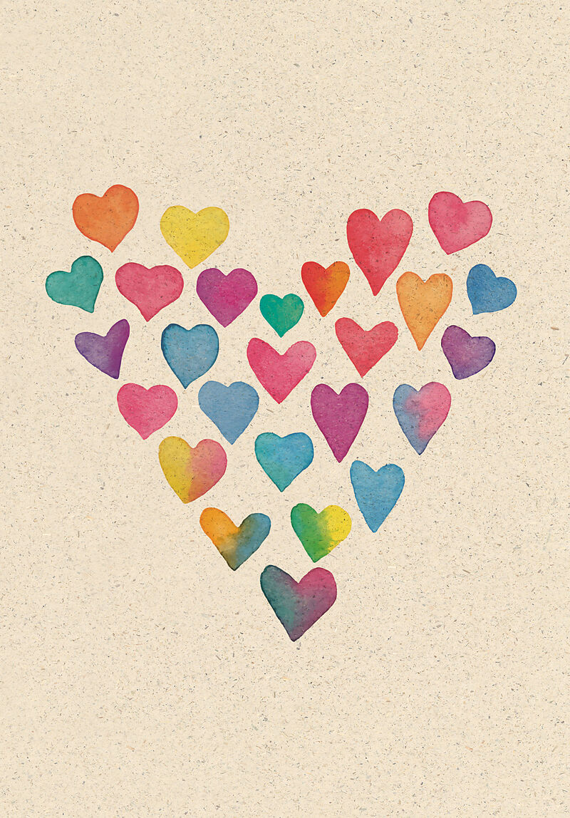 Herz in Regenbogenfarben Doppelkarte aus Graspapier 12,2 x
