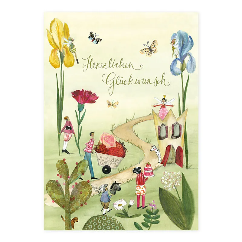 Herzlichen Glückwunsch Postkarte mit Blumenweg-Motiv