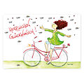 Herzlichen Glückwunsch Postkarte mit Fahrrad-Motiv