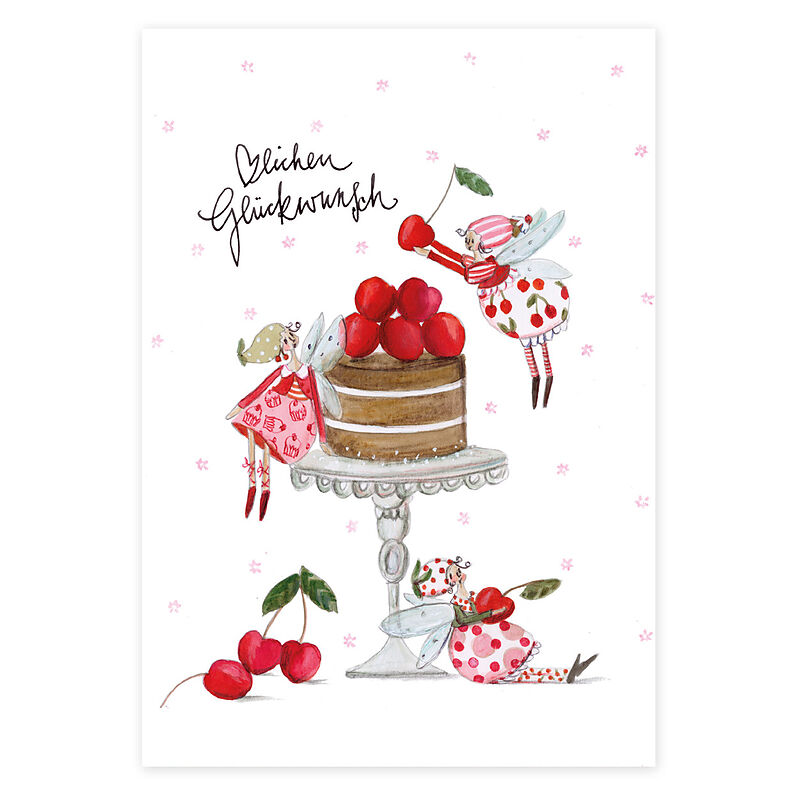 Herzlichen Glückwunsch Postkarte mit Kirschen-Motiv