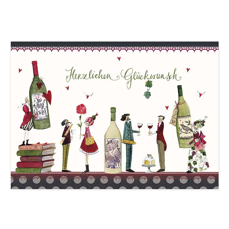 Herzlichen Glückwunsch Postkarte mit Wein-Motiv