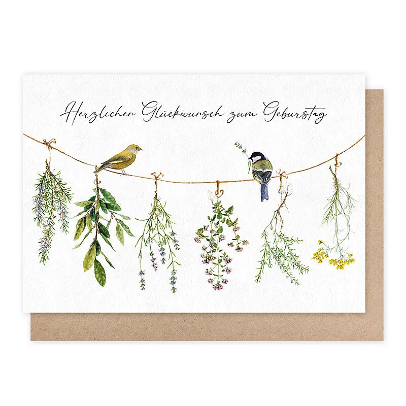 Herzlichen Glückwunsch zum Geburtstag Doppelkarte mit Kräuter-