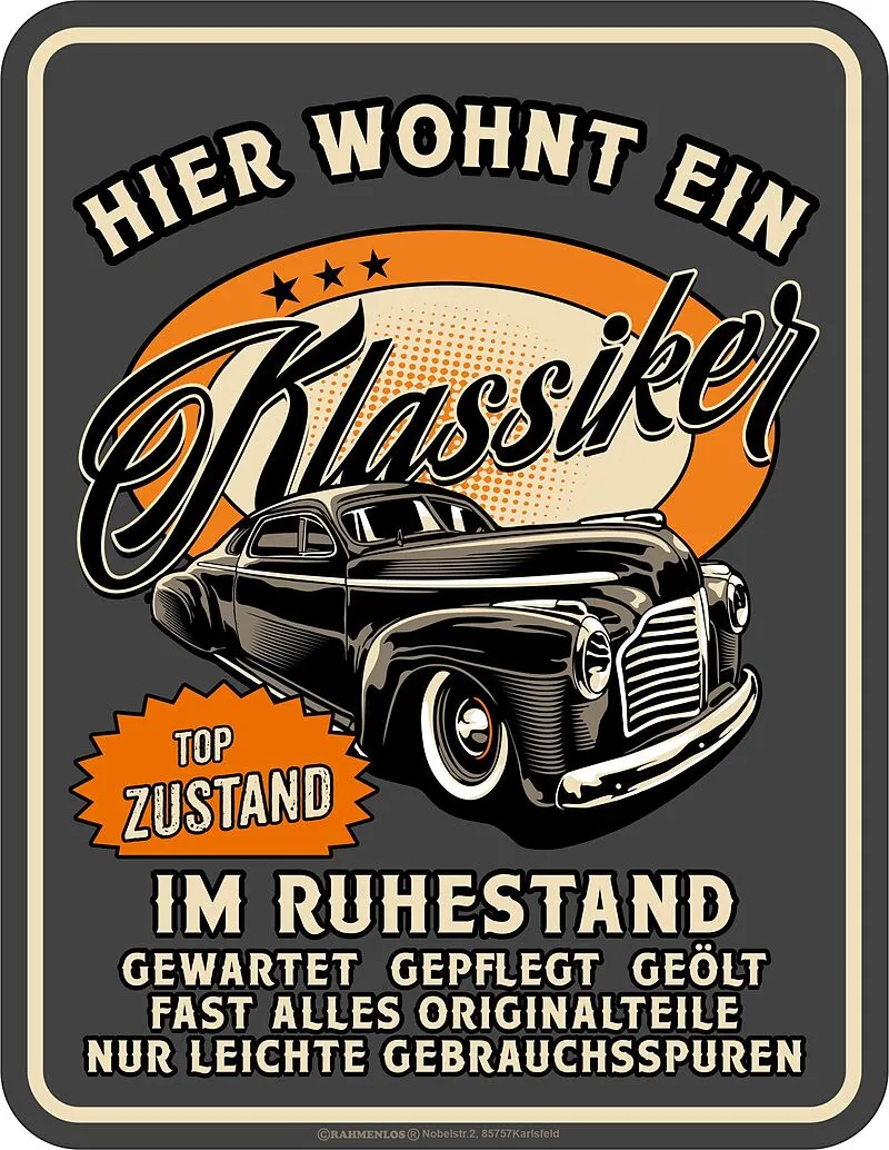 Hier wohnt ein Klassiker im Ruhestand Blechschilder