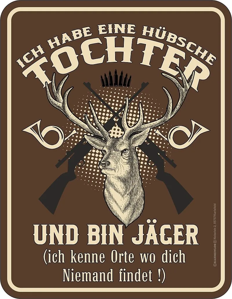 Ich habe eine hübsche Tochter und bin Jäger (ich kenne Orte wo dich niemend findet!)Blechschild im Format 17 x 22cm aus rostfreiem Aluminium.