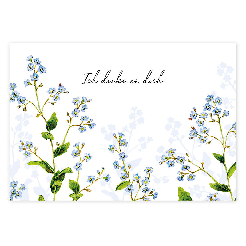 Ich denk an dich Postkarte mit Vergissmeinnicht-Motiv