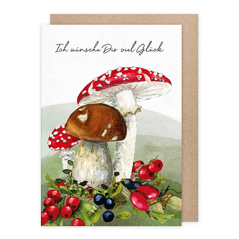 Ich wünsche dir viel Glück Doppelkarte mit Pilze-Motiv