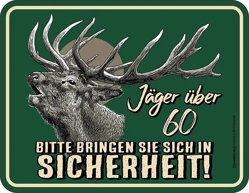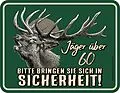 Jäger über 60 Bitte bringen sie sich in Sicherheit!Blechschild im Format 17 x 22cm aus rostfreiem Aluminium.