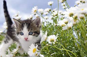 Kätzchen mit Blumen Minikarte