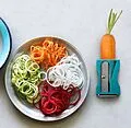 Erst schälen und im Anschluss spitzen/schneiden Schäler an der Unterseite integriert Für alle länglichen Gemüsesorten geeignet