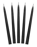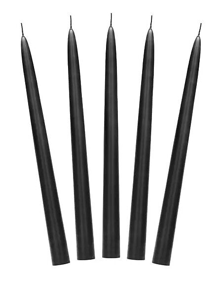 Schwarze matte Kegelkerze, Höhe ca. 24 cm. Brenndauer pro Kerze ca. 5 Stunden. 1 Verpackung = 10 Kerzen. ein Hingucker, nicht nur für Halloween.