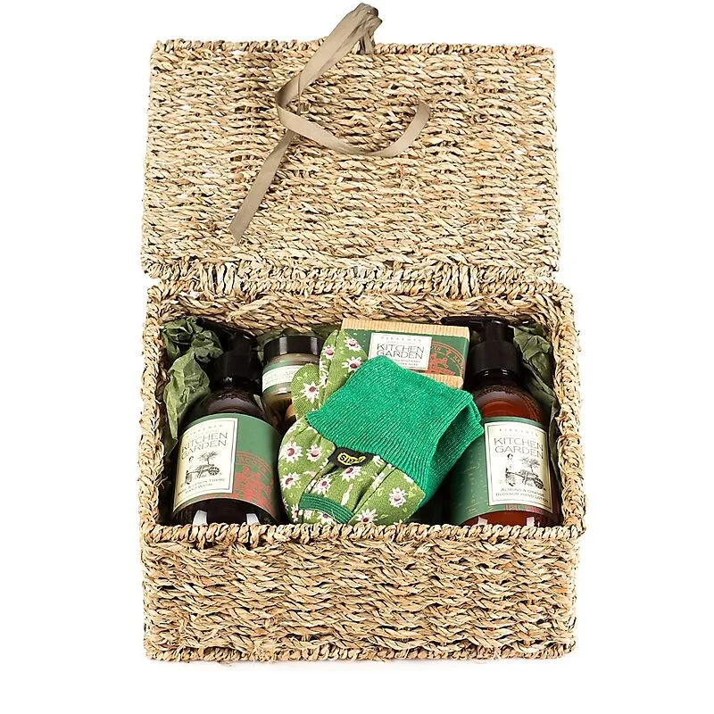 Dieses hochwertige Geschenkset besteht aus: Flüssigseife 300ml Basilikum & Zitronenthymian Handlotion 300 ml Mandel & Orange Gartenhandschuhe Lippenbalsam Bienenwachs 15ml Seife Rosmarin & Lemon 85g Nagelbürste mit Bimsstein Verpackt in Klappkorb Fikkerts samm...