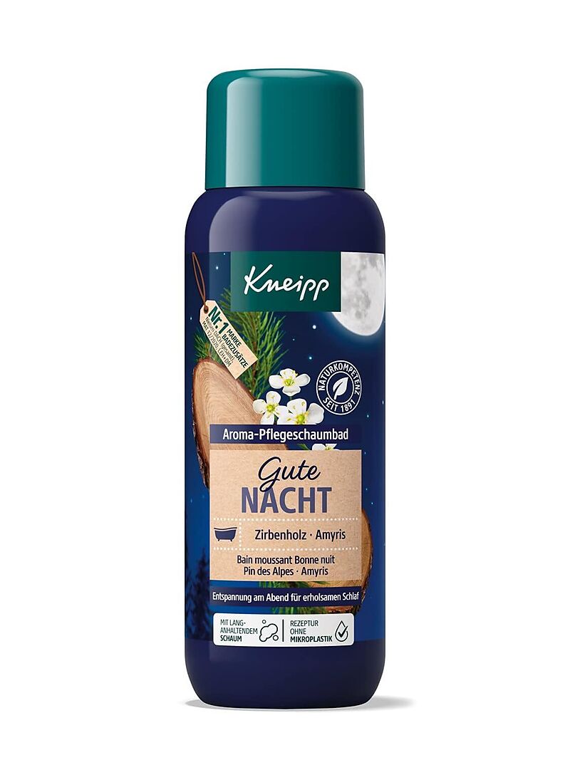 Entspannung am Abend für eine erholsame Nacht: Geniesse dein Abendritual mit der Kneipp¸ Bade-Essenz Gute Nacht und bereite dichauf erholsamen Schlaf vor. Das Bad mit ätherischen Ölen aus Zirbenholz und Amyris, dem beruhigend, warm-holzigen Duft und dem tiefbl...