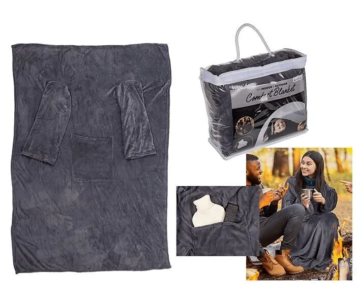 Material: 100 % kuschelweicher Polyester, ca. 135 x 172 cm, in PVC-Trag-Tasche mit Reissverschluss. Wohlige Wärme bei garstiger Kälte !