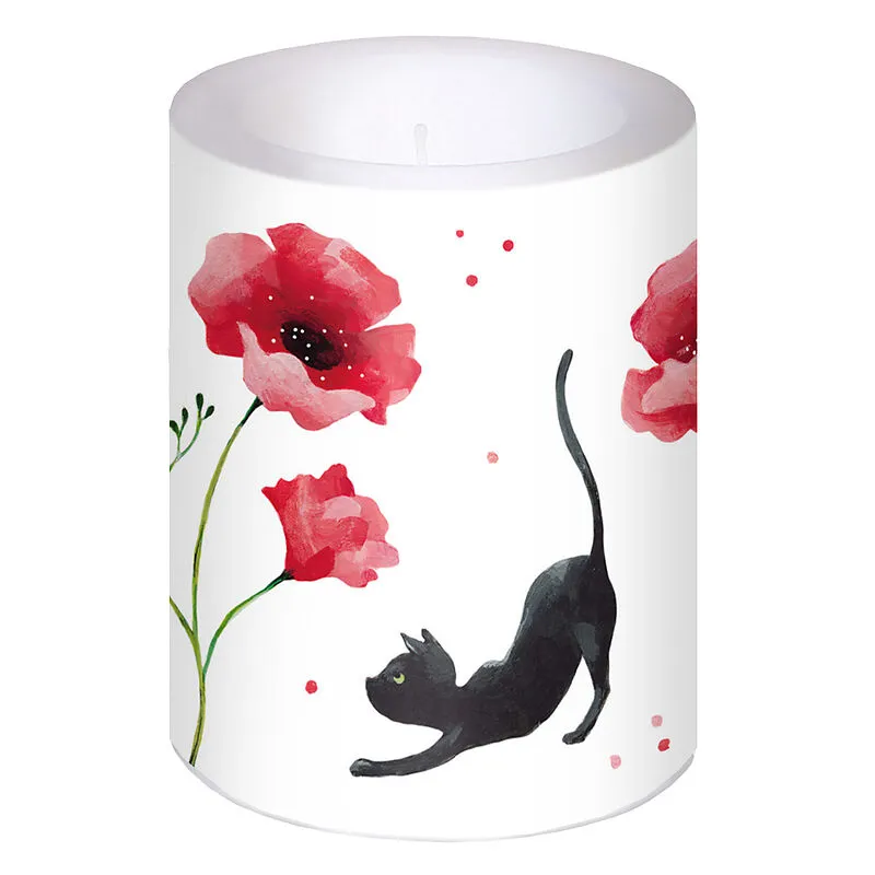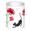 Lampionkerze mit Katzen- und Blumen-Aufdruck