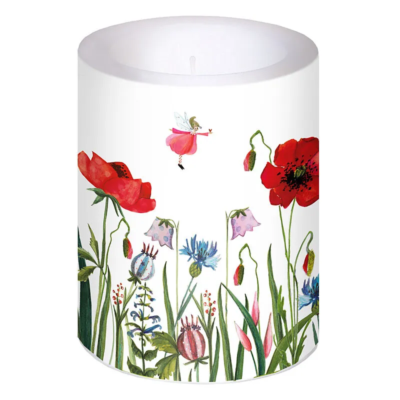 Lampionkerze mit Mohnwiese-Aufdruck