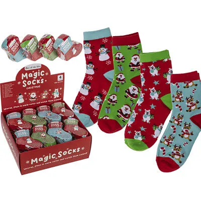 Faszinierend! Einfach in warmes Wasser legen und du kannst zuschauen wie plötzlich wie von Zauberhand geführt ein magisches Paar Socken in voller Grösse entsteht! Spannend und macht Spass! Material: 72% Baumwolle, 23% Polyester & 5% Elasthan, Motiv/Farbe nicht...