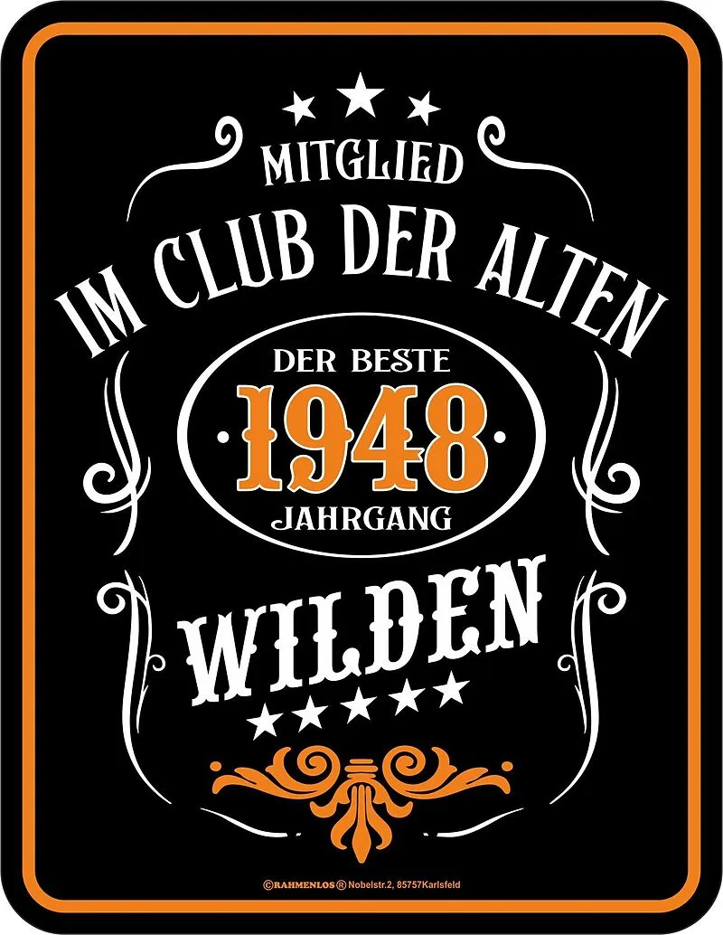 Mitglied im Club der alten Der beste Jahrgang 1948Blechschild im Format 17 x 22cm aus rostfreiem Aluminium.