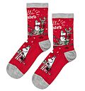 Rote Socken aus der Mumin-Kollektion mit festlichem Mumin-Motiv und dem Schriftzug "Hello Winter". Elastische Rippbündchen Knielange Socken Aus weichem, elastischem Material Hergestellt nach Öko-Tex Standard Die Socken sitzen fest und rutschen nicht offiziell ...