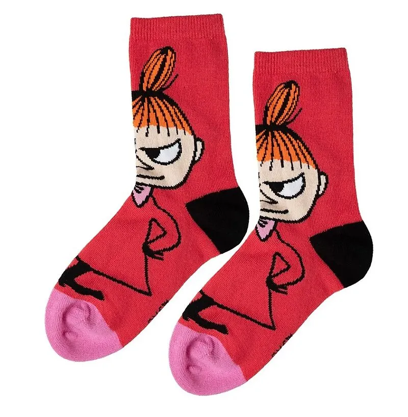 Rote Mumin-Socken für Kinder mit einem vollflächigen Aufdruck der lustigen kleinen Mü. Dank der Rundhalslänge bleiben die Socken gut oben. Elastische Bündchen, Crew-Style-Länge, aus weichem, elastischem Material, hergestellt nach Öko-Tex-Standards Bündchen ver...