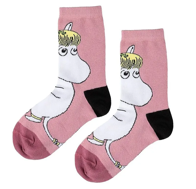 Bezaubernde rosafarbene Muminsocken für Kinder mit einem Vollprint von Snorkfräulein und einer Rose. Dank der Rundhalslänge bleiben die Socken gut sitzen. Dehnbare Bündchen, Rundhalslänge, aus weichem, elastischem Material, hergestellt nach Öko-Tex-Standards B...