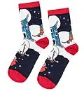 Dunkelblaue Kindersocken aus der Mumin-Kollektion mit festlichem Aufdruck von Mumin, Klein-Mü und Schnüffel. Elastische Rippbündchen Knielange Socken Aus weichem, elastischem Material Hergestellt nach Öko-Tex Standard Sitzen sitzen fest und rutschen nicht offi...